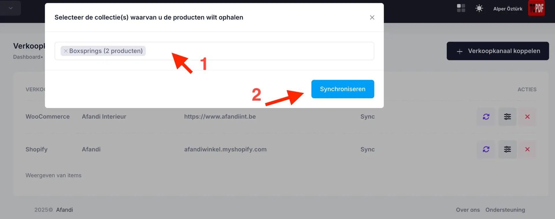 Synchroniseer alleen producten die je in Afandi beheert